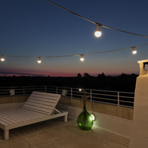 Si affaccia sulla corte principale e dall’ampia terrazza, ad uso esclusivo e arredata con mobili da giardino e barbecue, si può godere del panorama circostante.